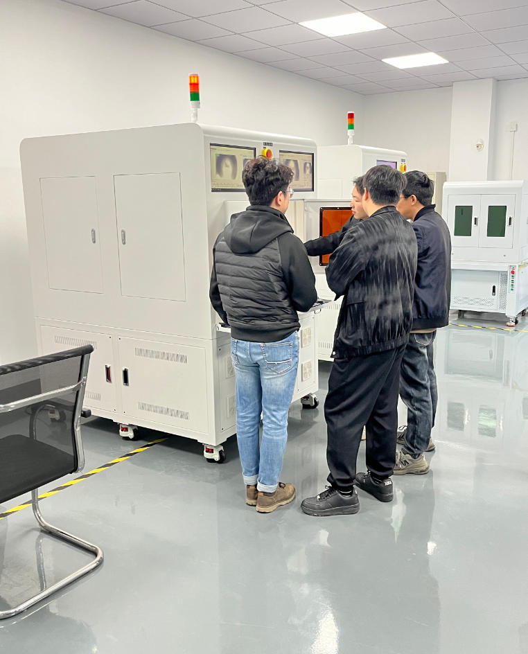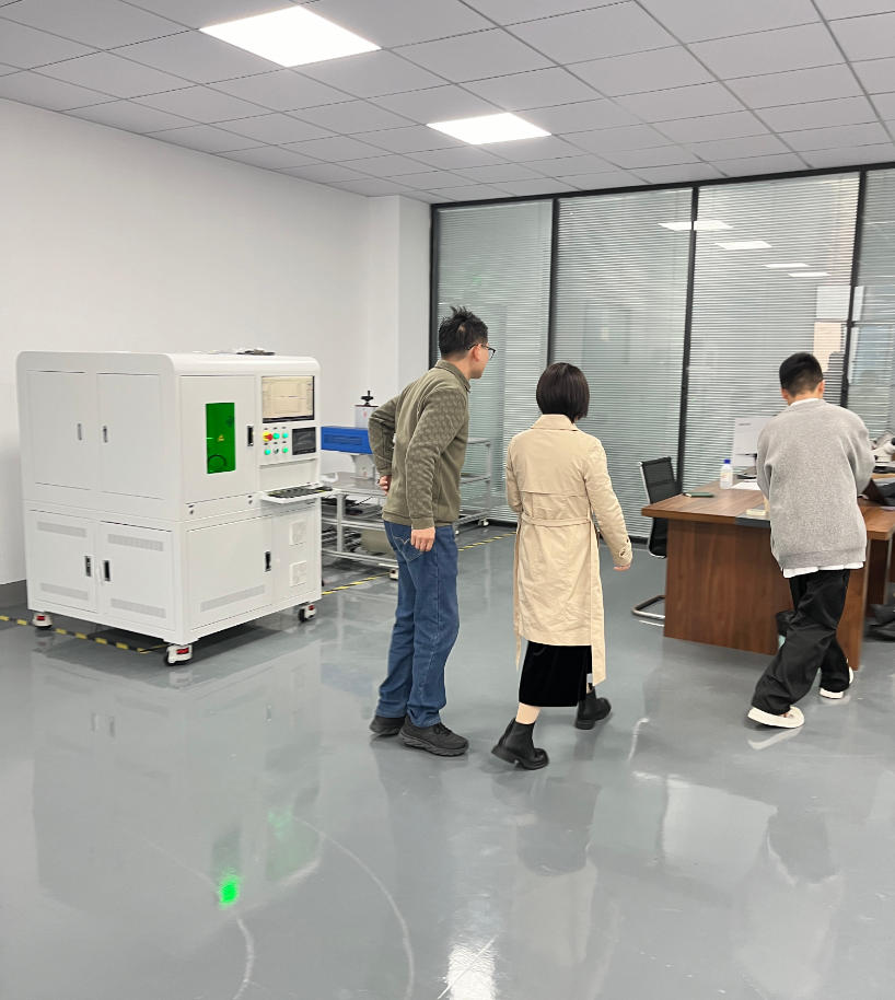 考察期间,客户一行先后走进生产车间、装配调试区、成品展示区,近距离查看设备生产全流程,详细了解我司在激光精密剥离领域的技术研发、生产工艺、质量管控及产品应用场景。现场工作人员对设备的核心优势、性能参数、操作流程及行业解决方案进行了全面讲解与实操演示,重点展示了设备高精度、非接触、不伤基材、效率稳定、适配多品类线材等核心特点。